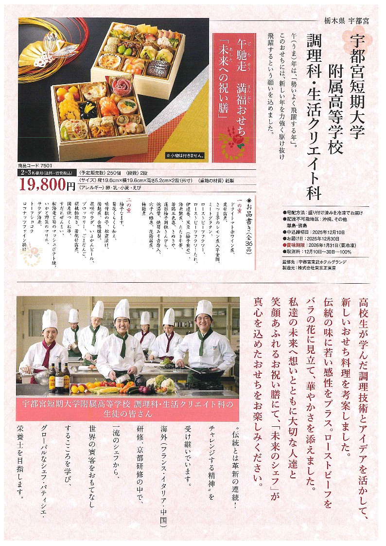 宇都宮短期大学附属高等学校は、普通科(中高一貫/特別選抜/特進/進学/応用文理各コース)・生活クリエイト科・情報デザイン科・調理科・音楽科を有する総合学園。