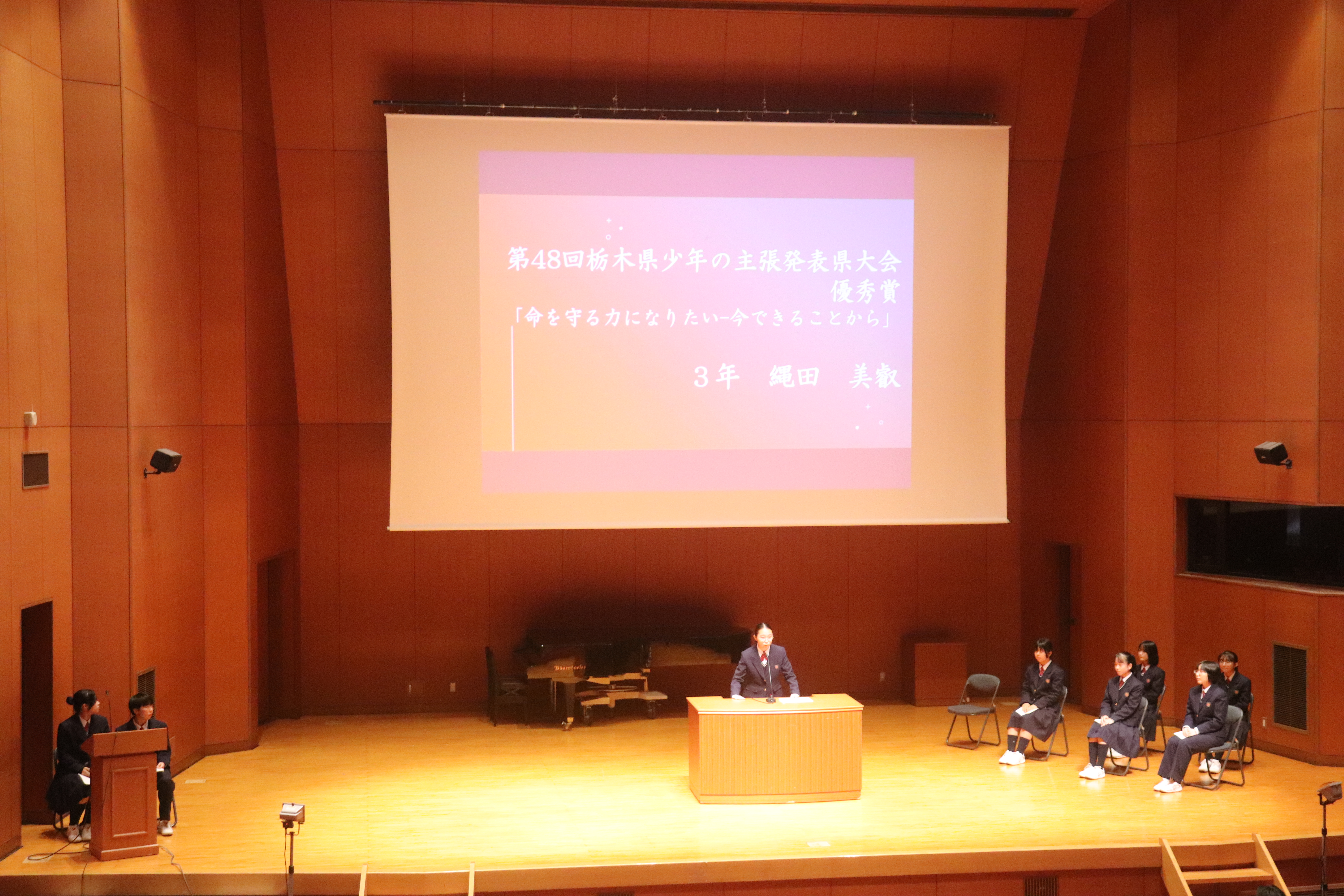 少年の主張は, 自分の考えを堂々と伝える姿がとても立派でした。心のこもったスピーチに, 聞く方も引き込まれました。