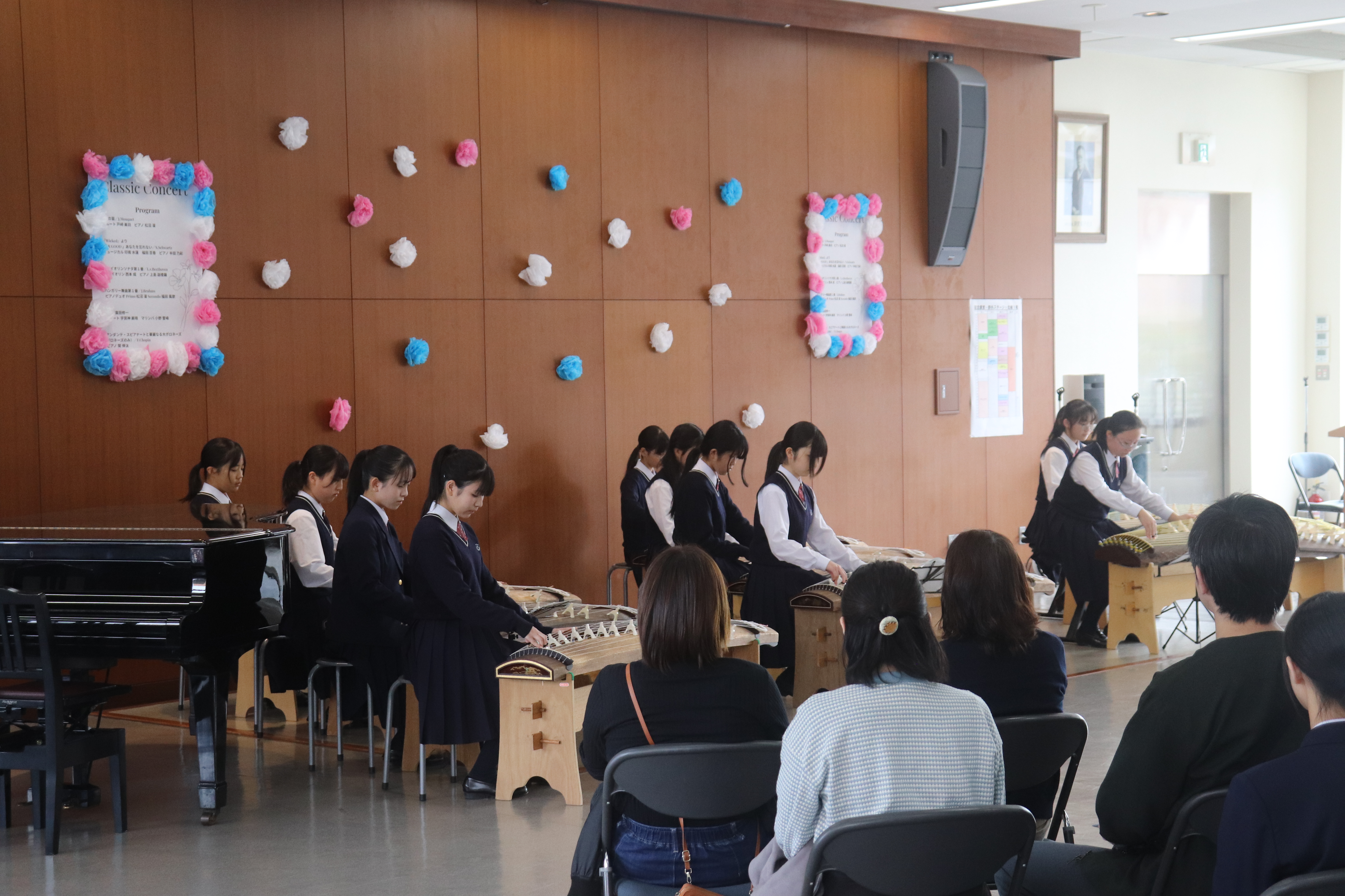 野外ステージではダンス部やダンス・バレエコンクール出場者が,小ホールでは筝曲合奏部が,教育会館では茶道部が発表し, 学校祭を盛り上げてくれました。