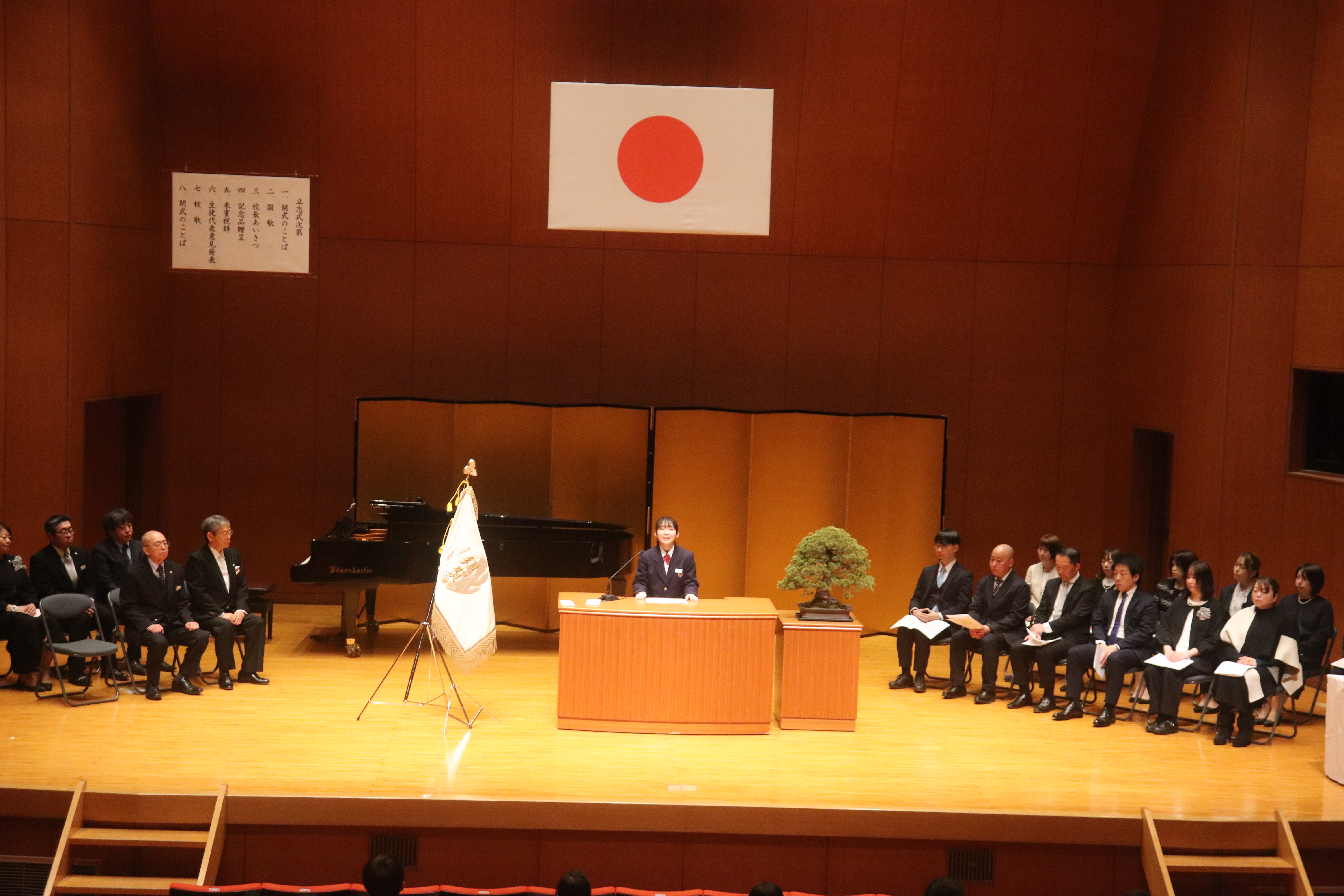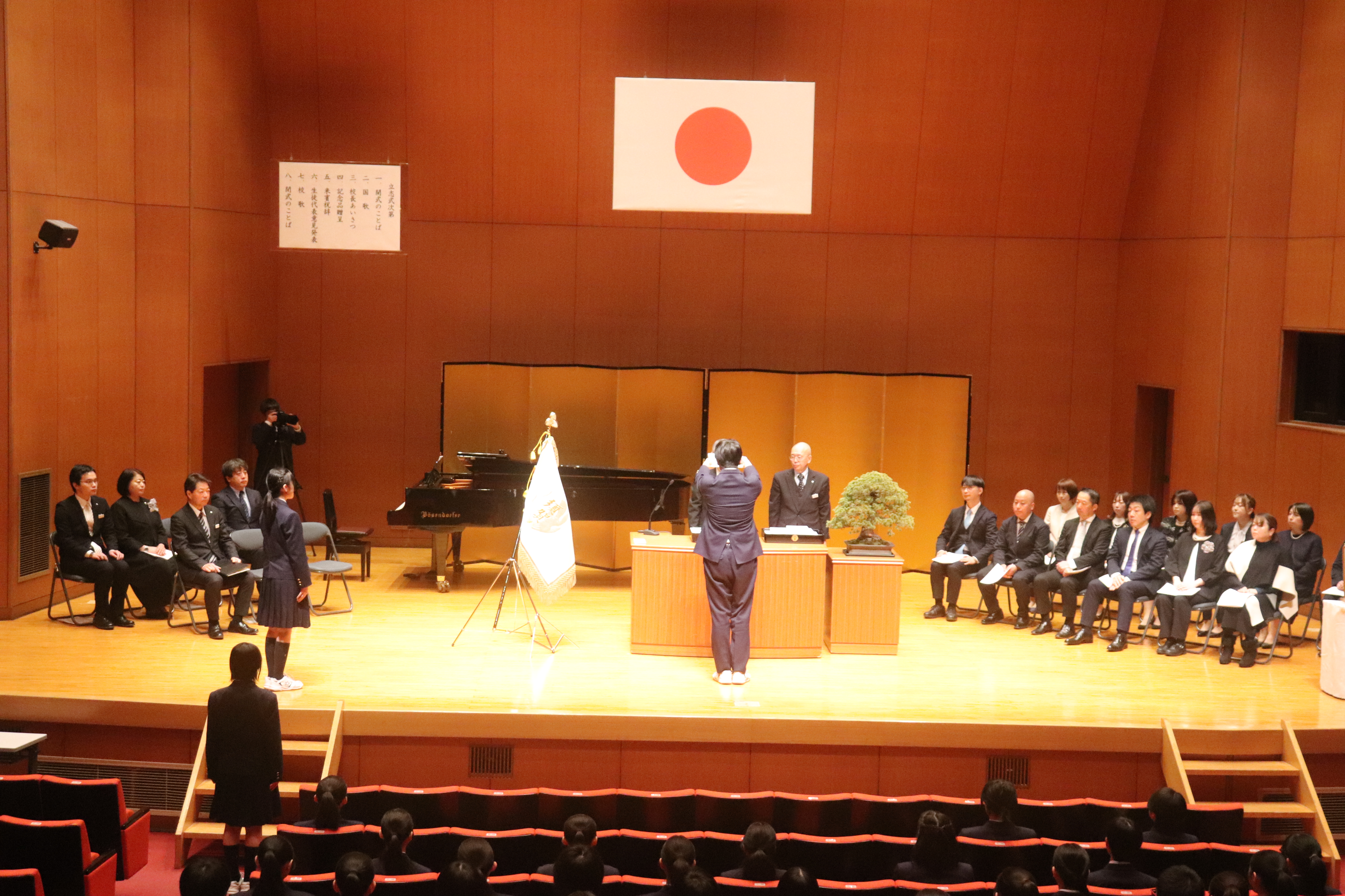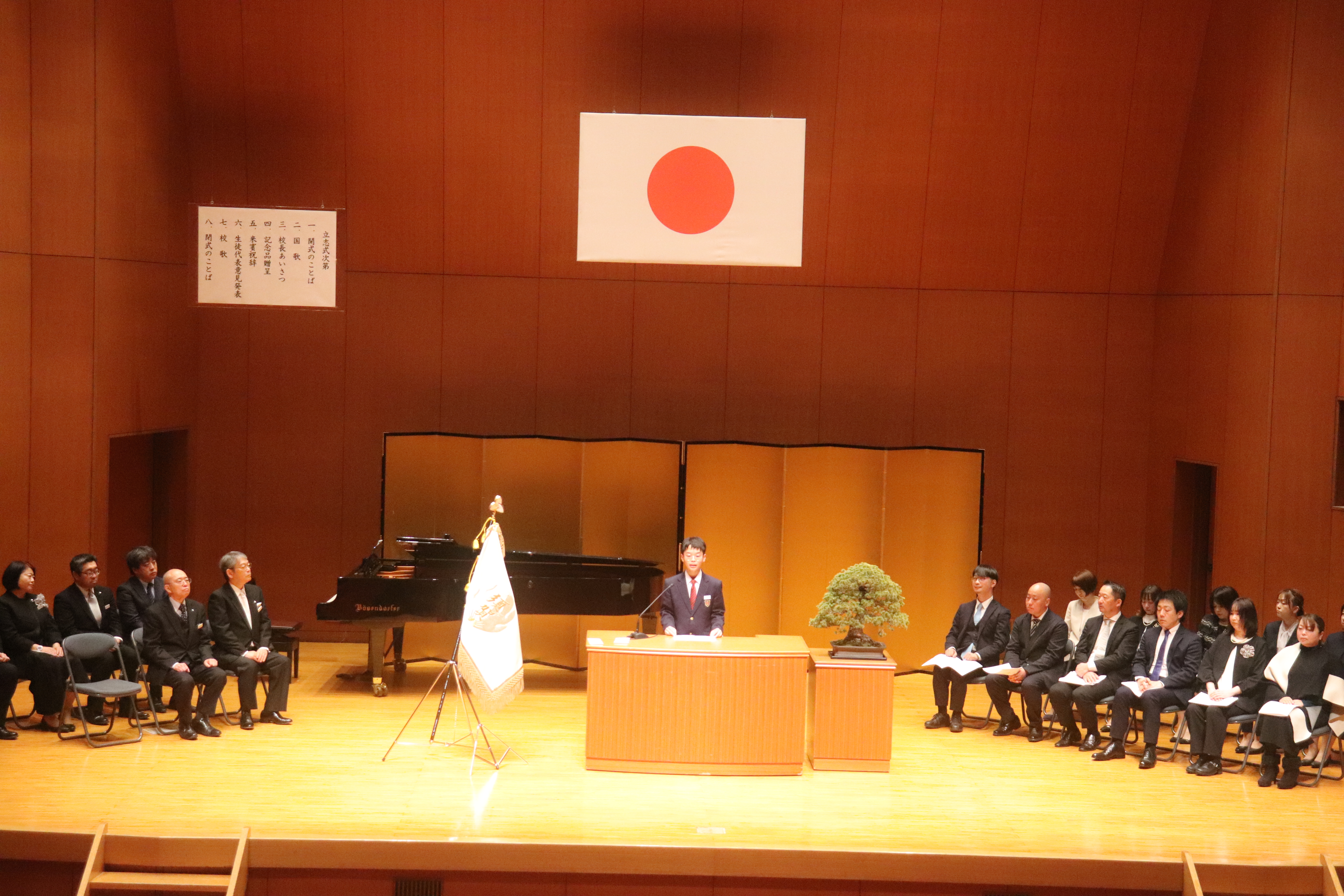 2月7日(土), 中学2年生の立志式を挙行しました。「和をもって貴しと為す」の色紙を記念品として一人ひとり校長先生がより受け取り,夢の実現に向けての決意を新たにしました。代表生徒2名による意見発表では,それぞれが立派な目標や考えを堂々と述べ,会場を魅了しました。