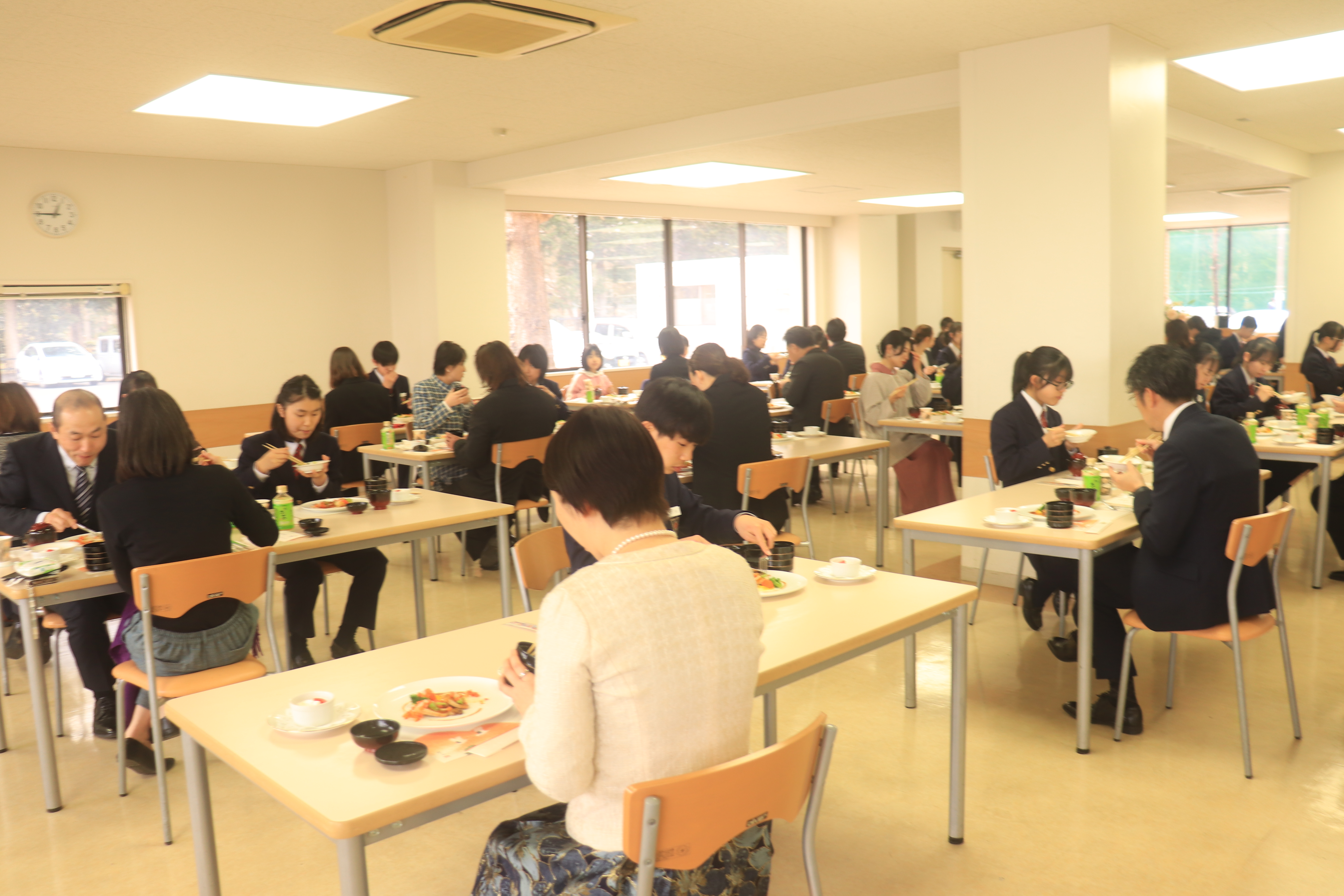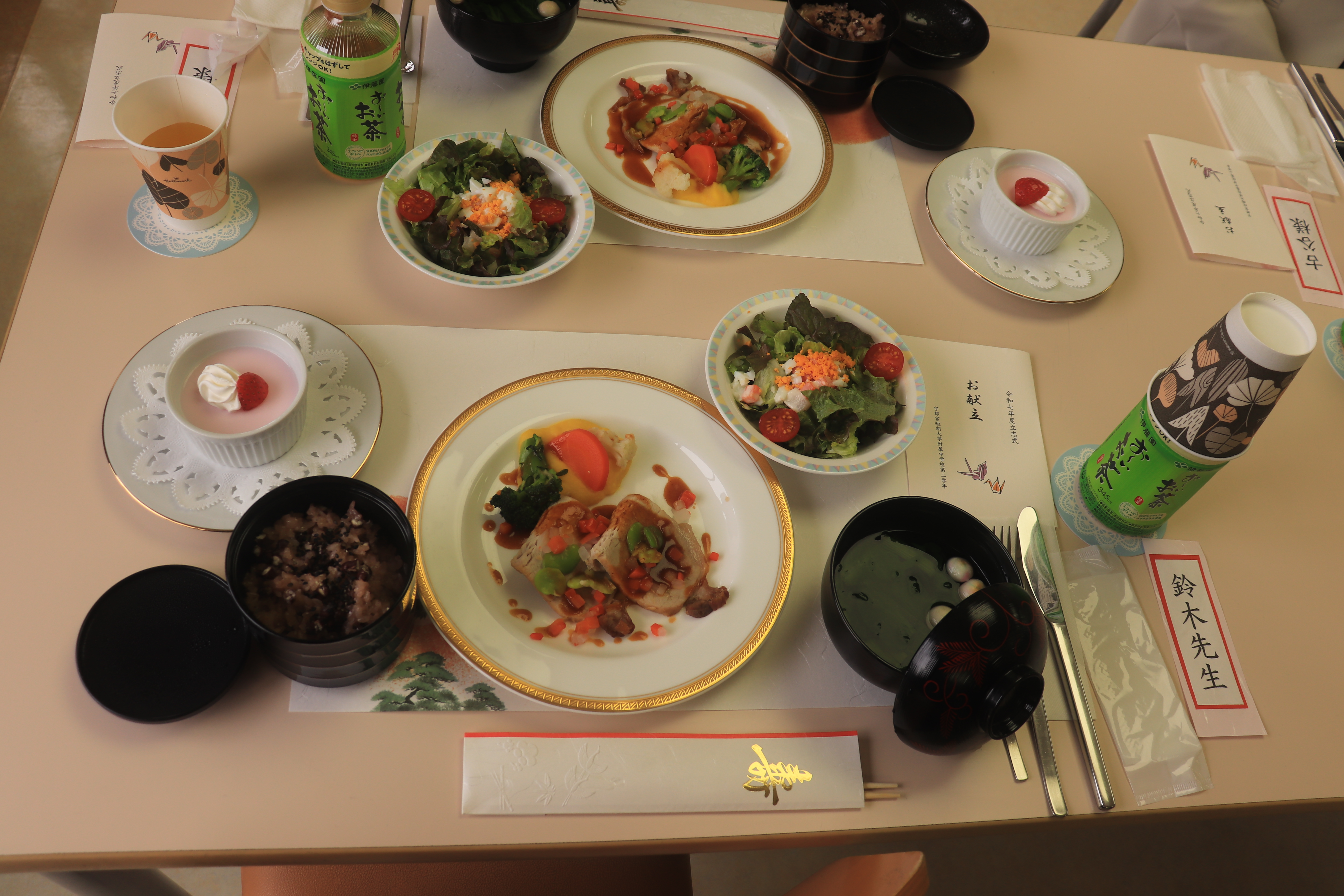 お祝い膳では, 高校調理科の生徒が配膳を担当し,とてもおいしく和やかな会食となりました。