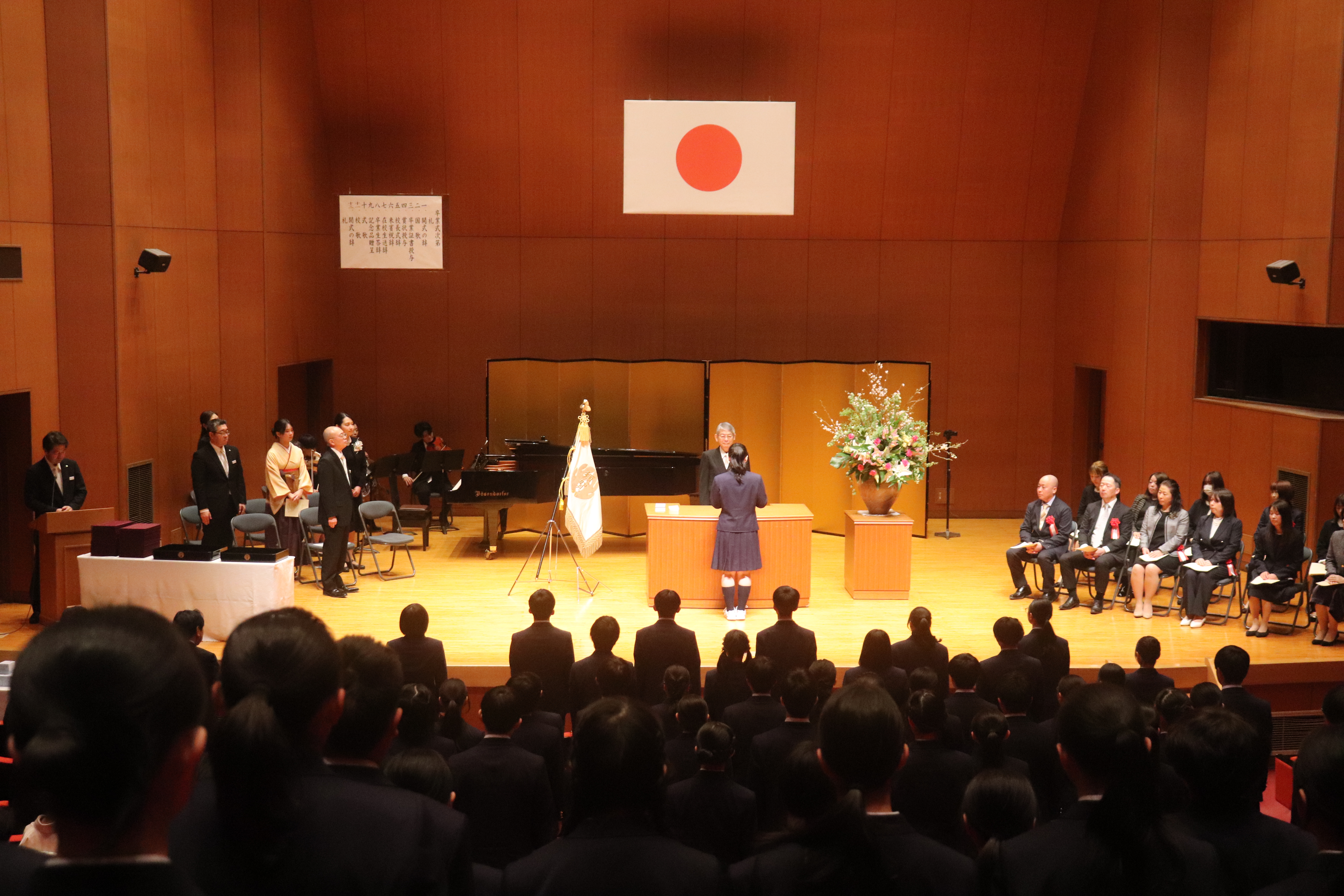 3月14日(土),須賀栄子記念講堂にて中学卒業式が挙行されました。式は,創立以来の一世紀に亘る伝統を継承し,厳粛な雰囲気で行われました。礼法に則り, 凛とした姿で臨む卒業生たちは,とても立派でした。